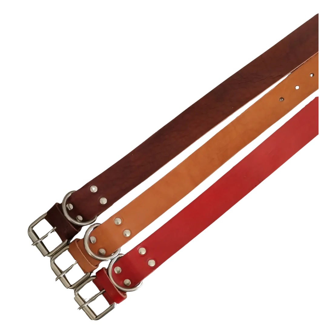 – Collar en cuero grueso. Dispone de gancho para que se pueda agregar una traílla o correa (no incluido).