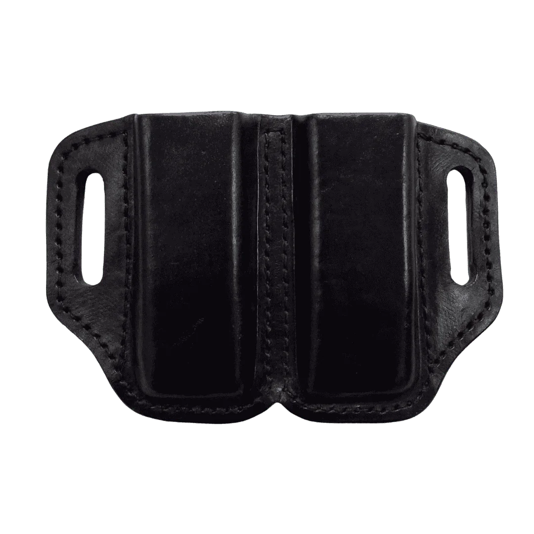 Porta alimentadoras en cuero amoldado con pasadores laterales para cinturón.
